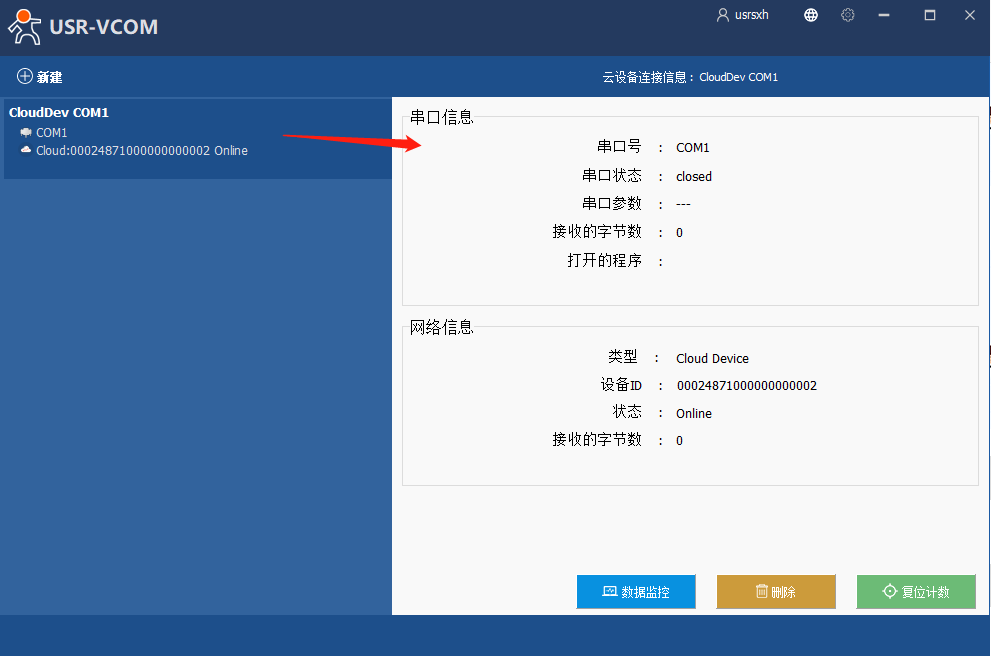 16、打开下载好的VCOM软件,点击 新建云设备。