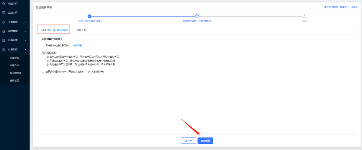 22、点击完成,可以在透传策略列表中看到新创建的透传策略。