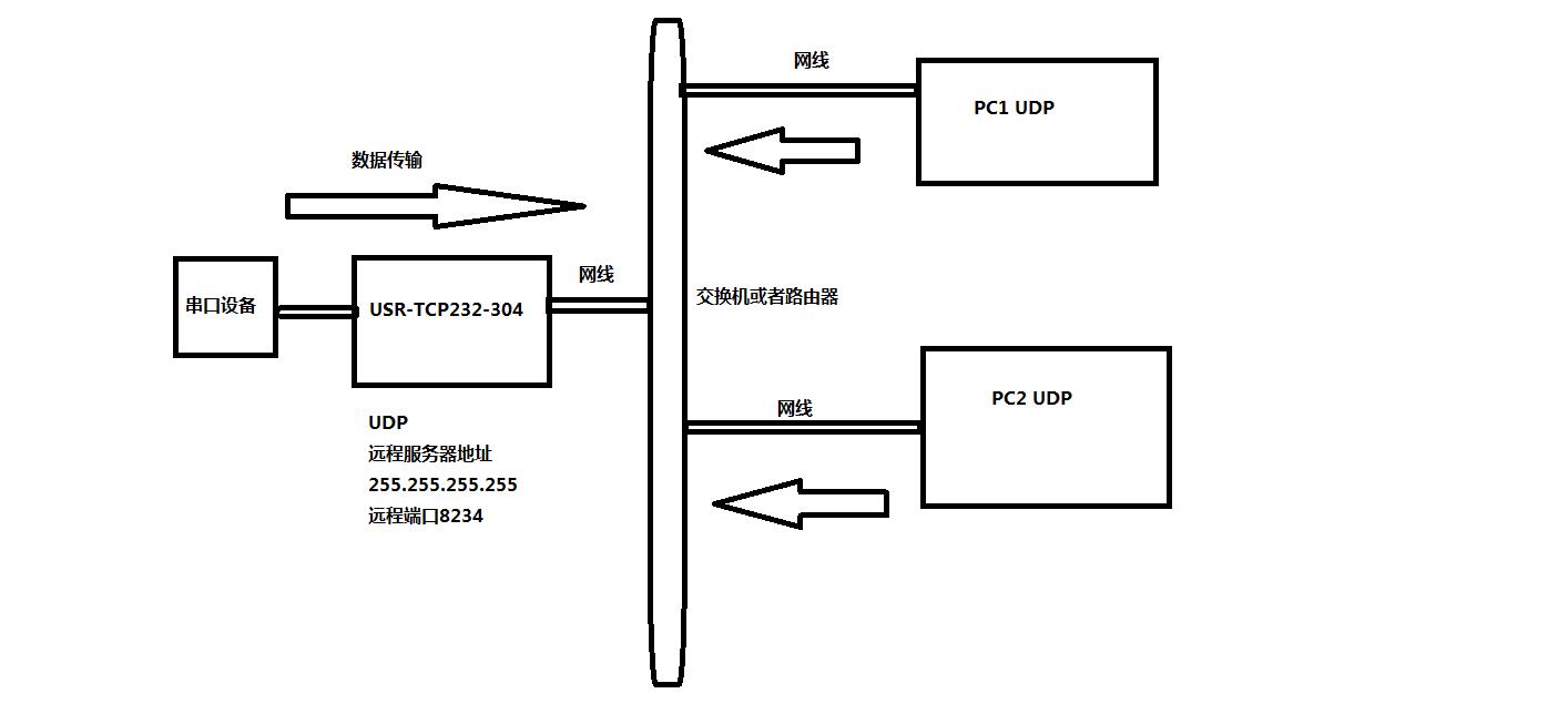 USR-TCP232-304 工作方式UDP 目标IP 255.255.255.255 远程端口8234 本地端口50