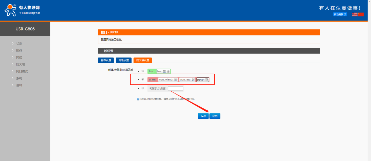 5、VPN的防火墙设置选WAN。