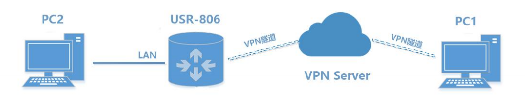 测试环境:PC 两台(接入同 VPN server),USR-G806 一台(使用 4G 接口);
