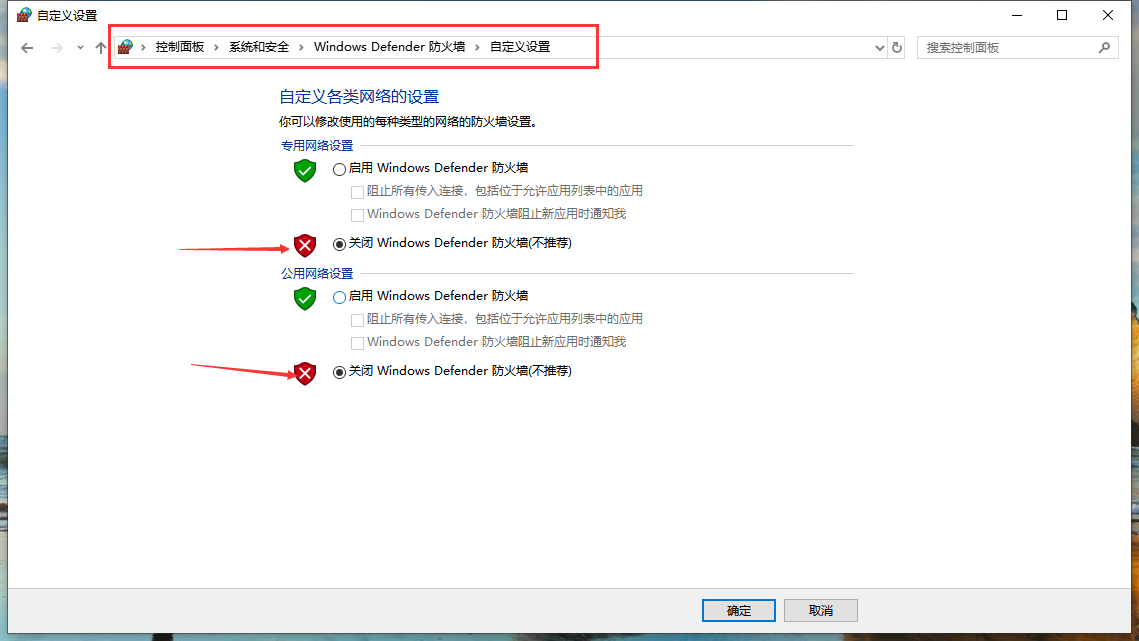 到“windows防火墙”和“更改适配器设置”选项,关闭防火墙并禁用与本次测试无关的网卡,并关闭电脑杀毒软件。