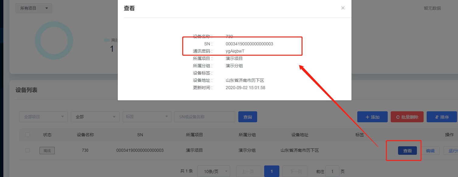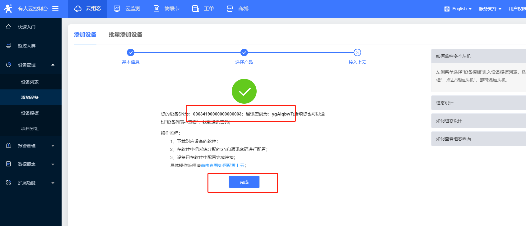 (2) 730目前不支持SN码添加,点击右侧“SN不支持,点这里”,设备ID和通讯密码可以自动生成,设备ID20位,通讯密码必须是8位(支持修改密码)。