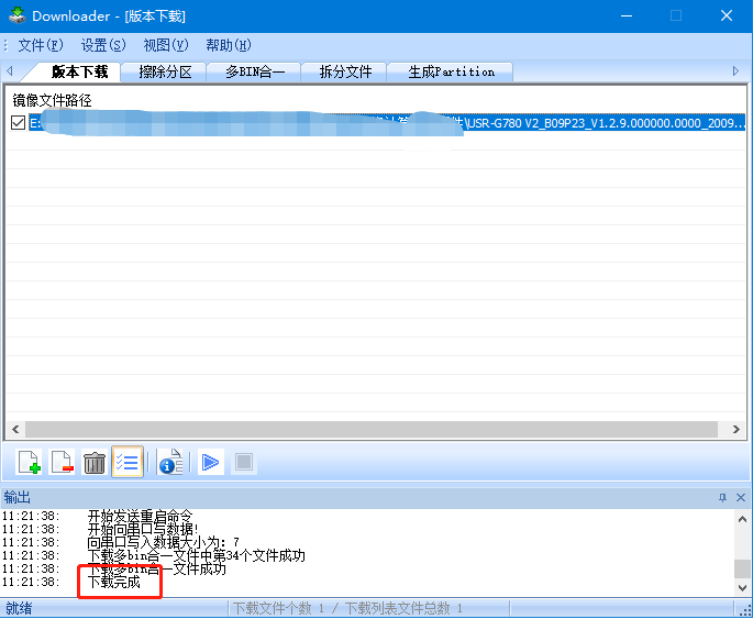 6、加载固件文件(如果先前有文件,先将先前的文件删除),然后开始下载固件