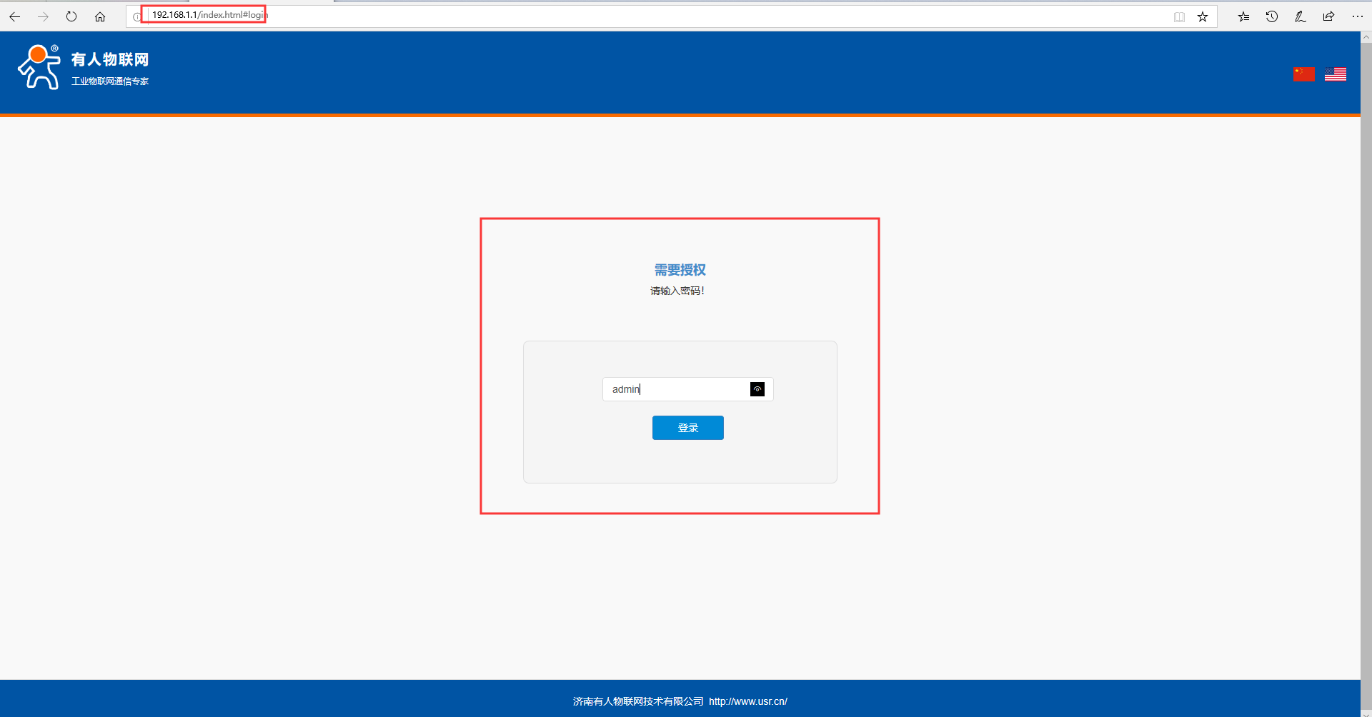 3.打开浏览器(不要用360浏览器),在地址栏输入电脑获取到的网关,通过网关登录内置网页界面,出厂默认网关为192.168.1.1、密码为admin