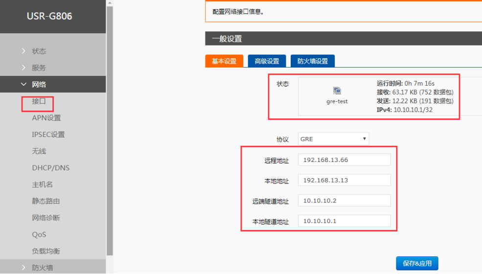 (2)选择添加新接口,名称可自定义,协议选则GRE,之后提交