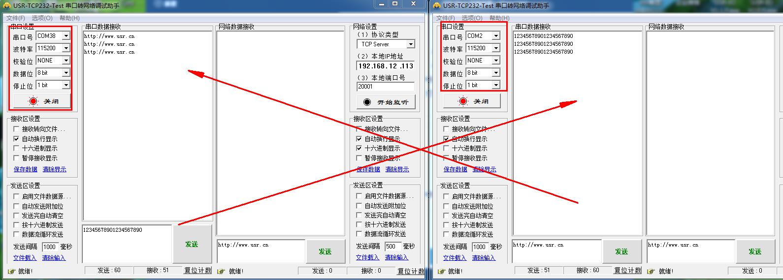 USR-TCP232-302 局域网内一对一通讯案例