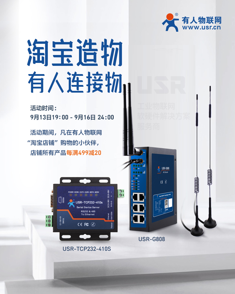 点击链接,可直接参加活动(USR-TCP232-410S:https://item.taobao.com/item.htm?id=19029368700)