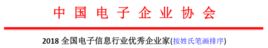 全国电子信息行业优秀企业家评选表彰活动是经国务院纠风办、工业和信息化部批准的全国性行业评选活动,旨在表彰在战略定位、创新能力、核心竞争力、社会责任感等方面做出突出成绩的企业家,由中国电子企业协会每两年举办一次。