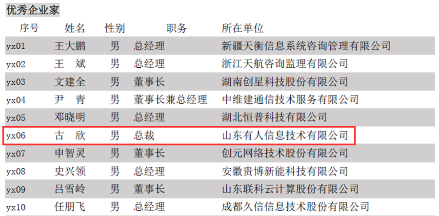 2018年全国电子信息行业优秀企业家名单发布,有人物联网总裁古欣荣获“2018年全国电子信息行业优秀企业家”称号,并受邀参加12月20日于北京举行的“第八届电子高峰论坛暨2018年全国电子信息行业优秀企业家表彰大会”。
