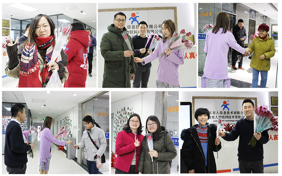 公司总部人力资源部同事,早早地来到公司,为每一名小伙伴派发节日玫瑰。无论女同事还是男同事,每人都会收到一支鲜艳的红玫瑰。