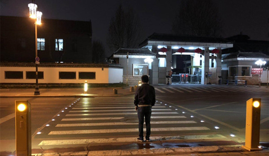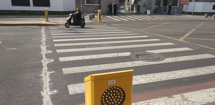 当没有行人通过马路时,系统不启动;当有行人踏上斑马线时,系统自动启动。通过这种“声光结合”的方式引导过往机车辆礼让行人,确保行人安全过马路。
