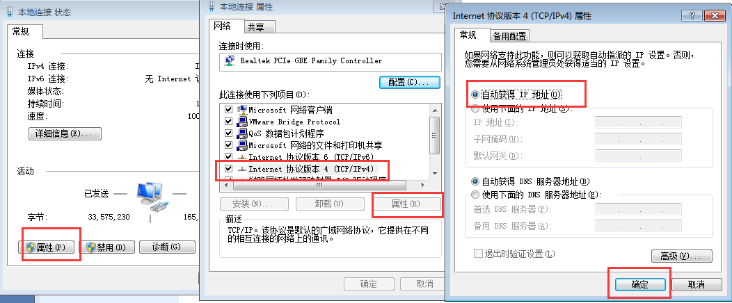 3、工作指示灯正常闪烁后,进行电脑配置,获取IP地址。