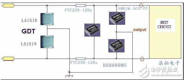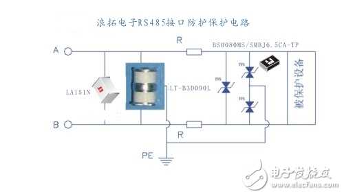 要用在RS-485端口的防护组件必须同时符合三项要求:第一、气体放电管(LT-B3D090L)的反应时间要快,脉冲击穿电压要低;第二、协同式保护方案两极之间的退偶隔离器件电阻要功率足够大,耐受能力好;第三、也是最重要的,保护方案在感应雷脉冲过电压事件发生期间所提供的钳制电压必须要够低,不能造成传输数据芯片的损坏。以上三项要求缺一不可,只要缺一,RS-485数据端口就无法被完善地保护。