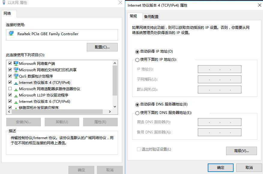 其次,在电脑端设置联网方式为自动获取IP地址。点击“控制面板”——“网络连接”——“本地连接”,右击“属性”——“tcp/ip协议”——“属性”进行设置。如下图所示。
