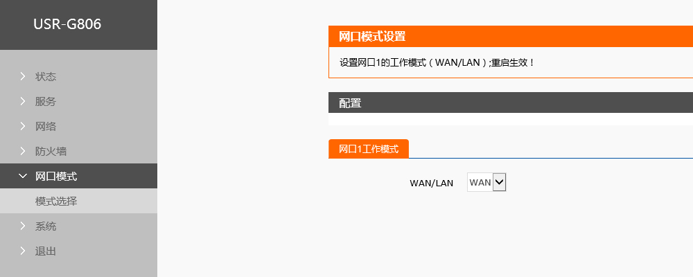 WAN+4G组网方式,也是WAN+LAN+4G组网。这种组网方式同时拥有有线和4G蜂窝联网两种连接到广域网的方式,形成互补,有效防止意外断网的发生,保障证数据的完整、稳定的传输。适合应用在连接以太网方便、并且对数据传输稳定性高的项目。设置方法是将网线连接好后,在设置界面,点击“网口模式”——“模式选择”,将网口1工作模式设置为“WAN”口即可。