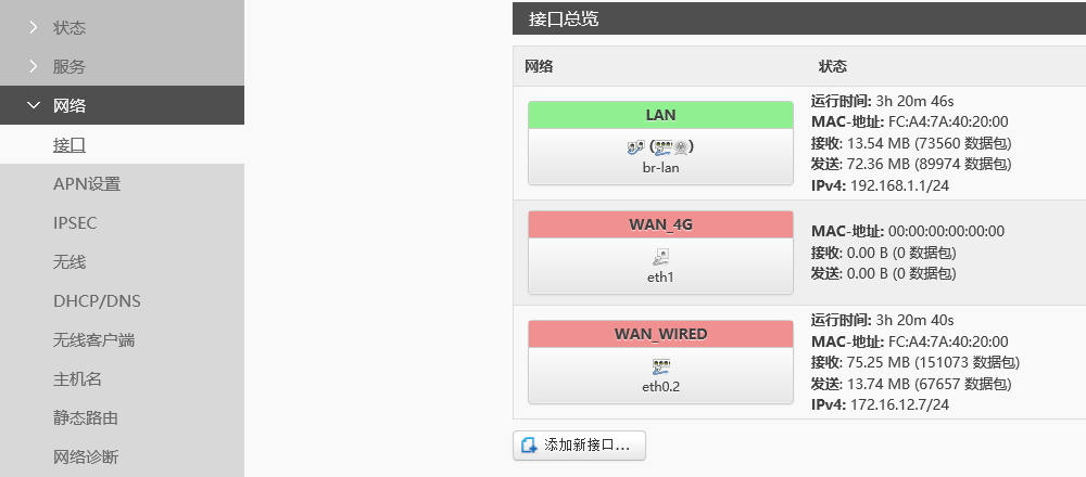 双LAN+4G组网适合在局域网内尽量多的接入网口设备,同时使用4G网络连接无线端设备,省去了布线成本。设置方法如上图,将网口模式选择为“LAN”口即可。