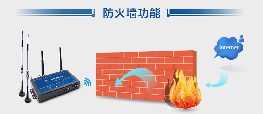 工业路由器的防火墙原理在不同网络的安全域之间有一系列软硬件结合的组件。通过监测、限制等方式尽可能的对外部屏蔽网络内部信息、结构和运行状况,有选择的接受外部访问。