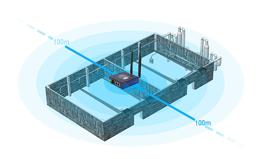 工业路由器的联网需要通过4G网络完成,但覆盖范围需要WIFI无线网络的支持。工业路由器的覆盖范围理论值是100-300米,但实际环境应用中很难到到理想值。因为实际应用的环境中可能有水、高压线、金属物等干扰信号强度,那么如果想通过工业无线路由器覆盖大面积范围时,应该注意什么?
