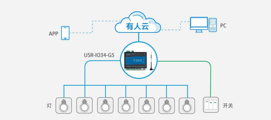 网络IO上电后,通过有人云即可轻松完成远程控制。用户通过PC或移动端调节灯控状态,全天候、多方位监控现场,实时把控全局,节省人力、物力成本。