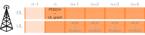 在无线电通信中,当发送数据包时,需要确认响应。在5G中,数据接收和确认传输之间的时序关系已针对4G进行了优化。在4G中,当在时隙n中发送信息时,仅在子帧n + 4中发送对该信息的确认。对于5G,该确认可在子帧n + 1、2、3或4中发送;它将根据UE处理能力和网络负载进行选择。