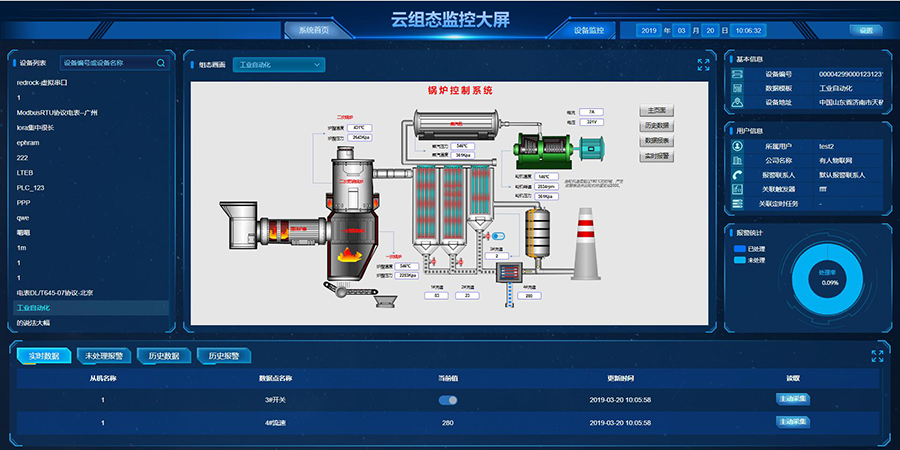 本项目采用人工智能、移动蜂窝网络、NB-IoT网络、LoRa网络、大数据、信息安全、中间件、智能感知终端、智能决策控制等技术,为客户呈现“云组态”、“设备管理”、“设备监测”、“物联网卡”、“用户管理”等五大子系统。