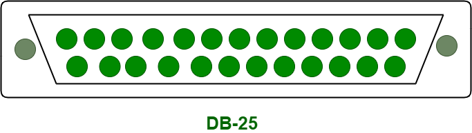 并行端口通常在zip驱动器,打印机,硬盘驱动器,CD-ROM驱动器等中实现。DB-25引脚连接器图如下所示。