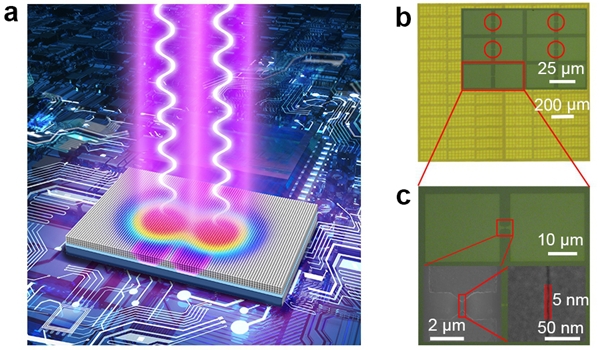 亚10 nm的结构在集成电路、光子芯片、微纳传感、光电芯片、纳米器件等技术领域有着巨大的应用需求(图1),这对微纳加工的效率和精度提出了许多新的挑战。激光直写作为一种高性价比的光刻技术,可利用连续或脉冲激光在非真空的条件下实现无掩模快速刻写,大大降低了器件制造成本,是一种有竞争力的加工技术。然而,长期以来激光直写技术由于衍射极限以及邻近效应的限制,很难做到纳米尺度的超高精度加工。近期,中国科学院苏州纳米技术与纳米仿生研究所张子旸研究员与国家纳米中心刘前研究员合作,在Nano Letters上发表了题为“5 nm Nanogap Electrodes and Arrays by a Super-resolution Laser Lithography”的研究论文,报道了一种他们开发的新型5 nm超高精度激光光刻加工方法(DOI: 10.1021/acs.nanolett.0c00978)。