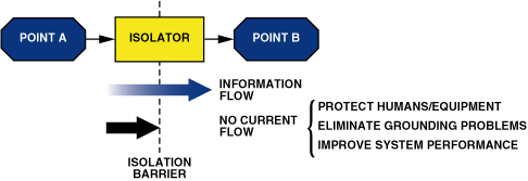变压器、耦合电容器、光耦合器(现在称为i耦合器)是提供电流隔离的典型方法,可以阻止电流在两点之间流动,同时允许数据不受阻碍地通过(图1)。隔离用于防止线路浪涌或接地回路引起的高电压或电流,这种情况可能在具有多个接地路径的任何系统中发生。用长电缆隔开的系统接地将不会处于相同的电位,因此接地电流将在两个系统之间流动。如果没有隔离,该电流可能会引入噪声,降低测量质量甚至破坏系统组件。