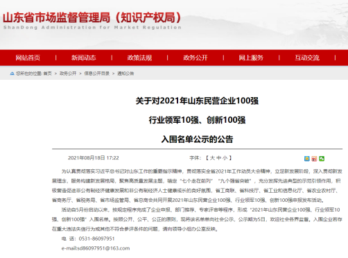 2021年山东民营企业100强、行业领军10强、创新100强名单公布 山东有人物联网股份有限公司强势入围