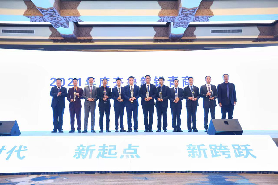 古欣(左二)荣获2021年度齐鲁十大新锐青商