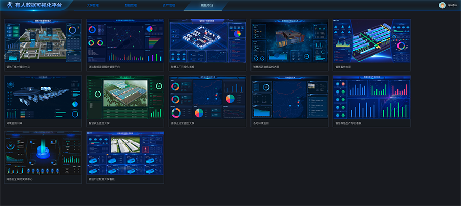 2、监控大屏支持自定义,可以自行绘制后替换默认大屏,也可以使用现成的大屏模板一键获得专业酷炫大屏。