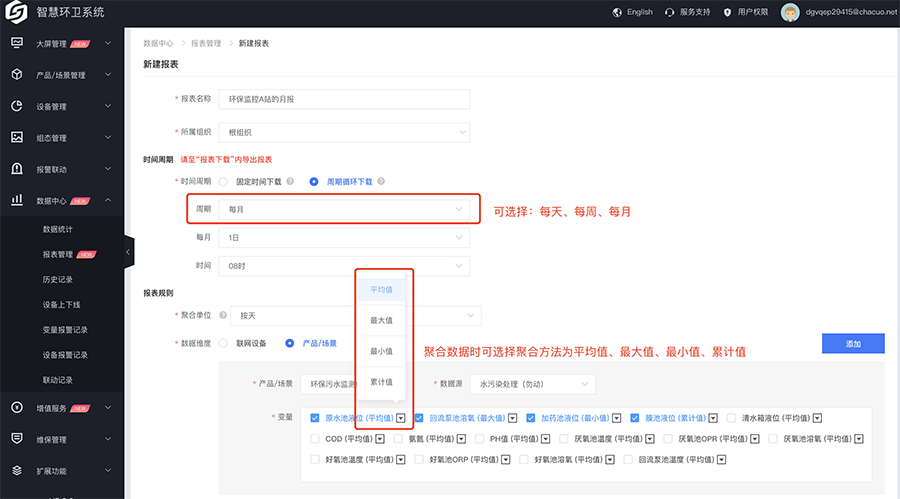 5、数据报表是一款经营分析类应用工具,可以多时间多维度取值分析,可实现历史数据分析定时生成日报、周报、月报等功能。