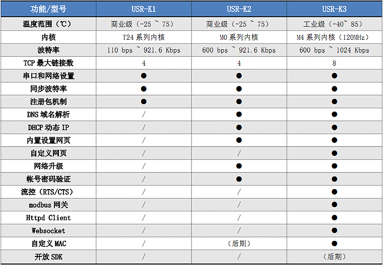对成本要求较高,或只需要稳定透传功能的民用产品, K1 的性价比让你眼前一亮!