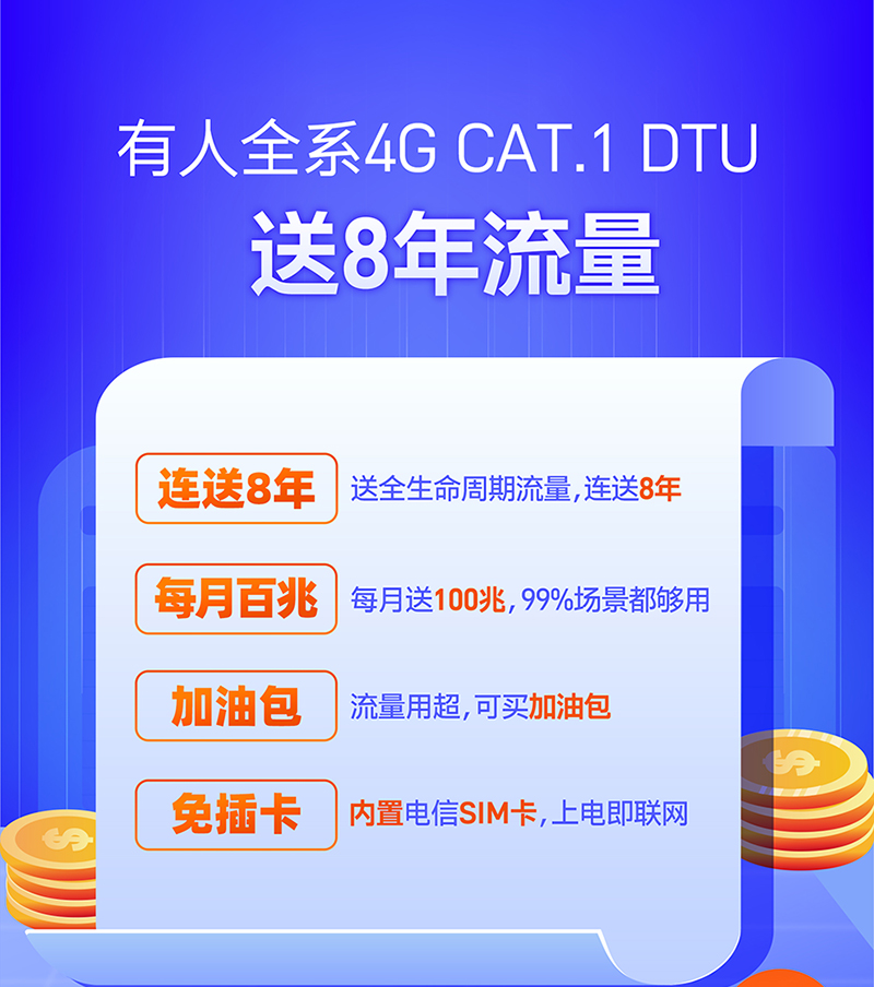 有人全系4G CAT.1 DTU 送8年流量