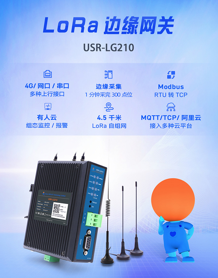 有人物联网为了满足越来越多领域的场景需求,投入大量资源对“USR-LG210”LoRa网关进行了全新升级,为用户提供一种高性价比的LoRa联网方案,其功能特点如下: