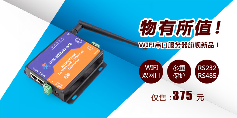 USR-WIFI232-630(简称:630)是“有人”今年新推出的支持双网口的wifi无线串口服务器旗舰机型.