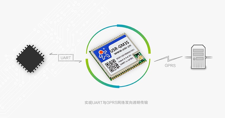 透传即透明传输,类似于GPRS DTU,通俗讲就是不管串口传的是什么,GM3S只是起一个通道作用,无需协议把传输的内容完好传给设定好的服务器!反之,服务器端传输也是一样效果。市面上的GPRS模块都必须支持自有的协议,而GM3S作为一款使用简单的GPRS透传模块,就可以缩短开发周期,降低使用门槛。