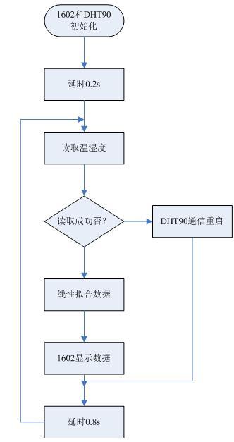 对于本系统,我首先调试1602的显示程序,重点理解时序图。对硬件理解清楚后,参照相关程序,编写自己规范的程序。然后,调试 DHT90数据通信显示,在SHT11(DHT90/SHT10也属于同系列)例程中,显示功能是利用51单片机串口向上位机发数据,在上位机上显示温湿 度。所以,这部分在我的程序中就去掉了。同样,DHT90程序部分的关键也是时序图,读明白时序图,就可以很快得进入编程调试阶段。