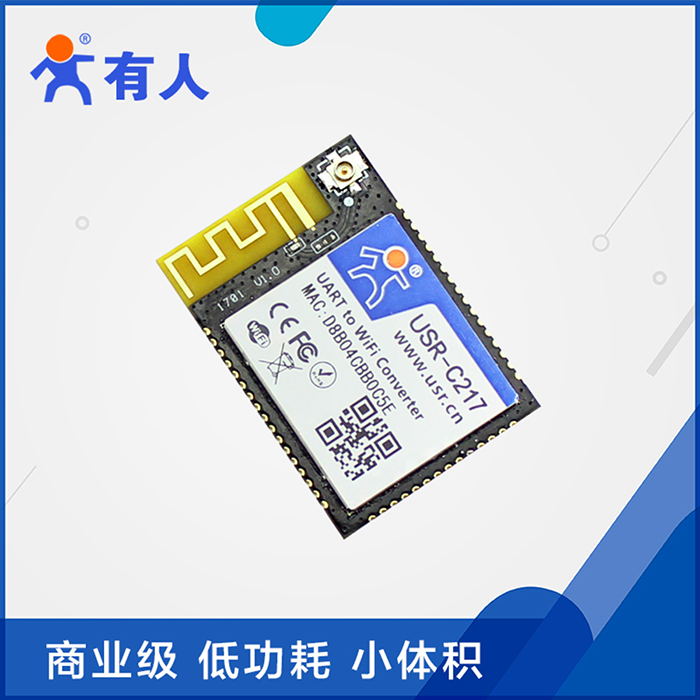 作为一款低功耗嵌入式串口转WIFI模块,USR-C217具有体积小、功耗低、高主频、速度快、传输稳的特点。适用于户外无线监控、农业、工业等项目。