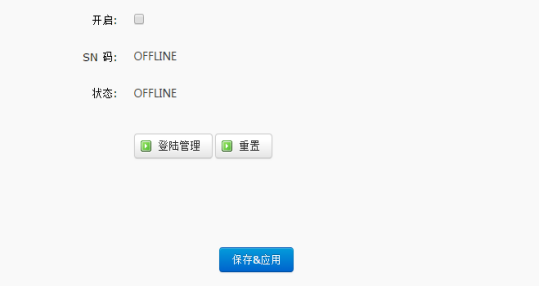 第一,选择开启。选择开启,点击保存,页面会显示SN码和服务设备状态。