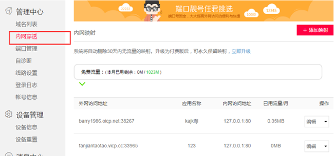 第六,内网穿透。切换到账号登录后,点击左侧的内网穿透。