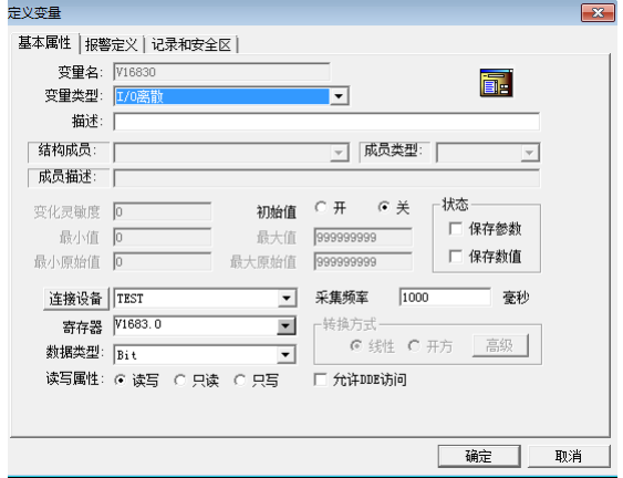 1.添加V16830,变量类型为离散,数据类型为Bit。