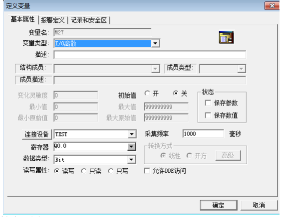 3.新增变量M27,变量类型为离散,数据类型为Bit