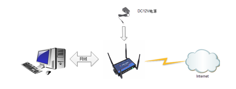 对硬件测试需要计算机一台、4G工业路由器USR-G800路由器一台、网线一根、DC12V电源一个,4G SIM卡一张。硬件连结构进行测试。