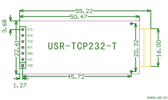 请一定注意 USR-TCP232-T模块的插针引脚是TTL电平,不要和232电平的设备进行直接连接,否则会烧坏模块。