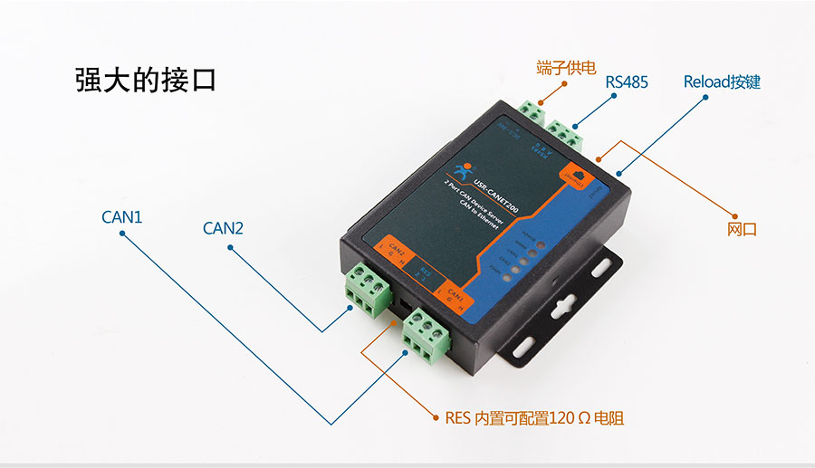 CAN设备CANET200增加一路RS485串口通讯方式,可实现CAN口与RS485之间互相通讯,通信距离更远,传输能力更强。