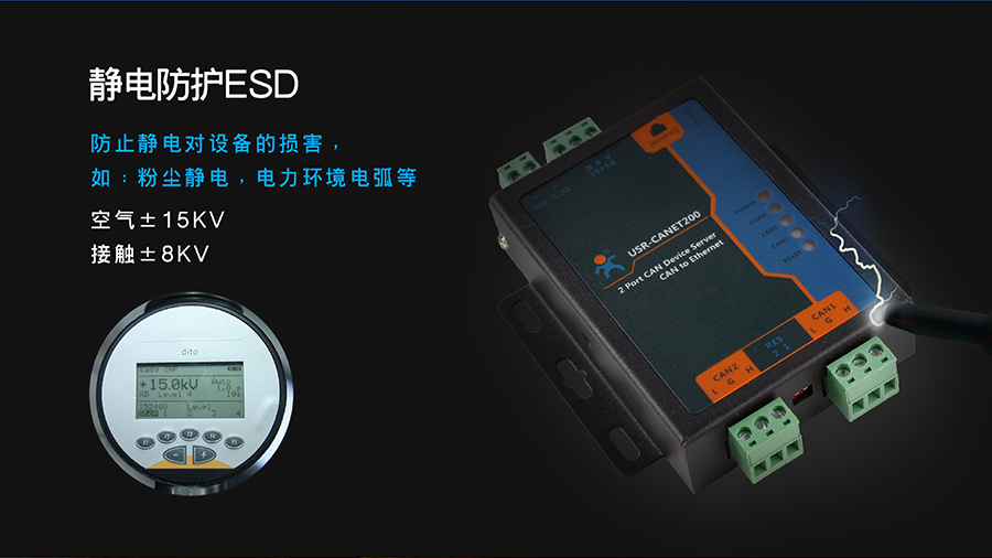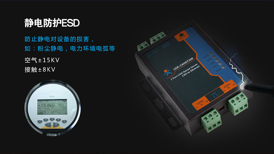 USR-CANET200是一款基于CAN总线转以太网服务器设备,CAN与网络设备通信的通信设备,实现CAN数据与网络服务器的数据通信。它内部集成了两路CAN接口和一路EtherNet接口以及TCP/IP协议栈, 用户使用它可以轻松完成CAN-bus网络和EtherNet网络的互连互通,进一步拓展CAN-bus网络的范围。