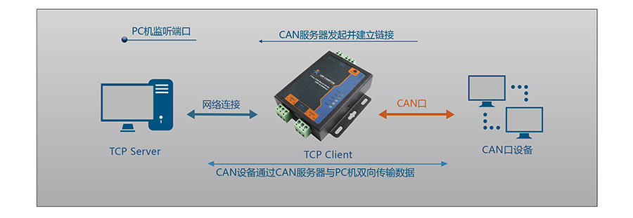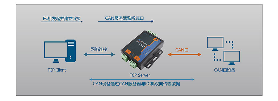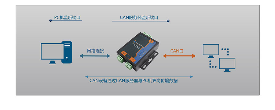 Can转以太网服务同时监听端口,将所有接收的数据转发给CAN设备。