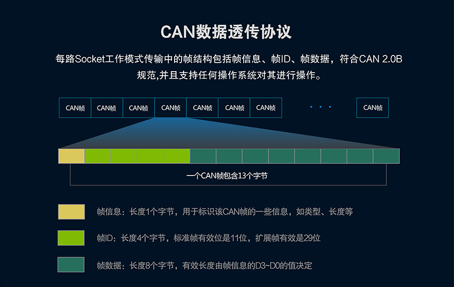 Can设备发送的数据将通过CAN设备透明传输给所有链接成功的客户端。